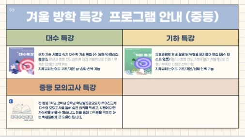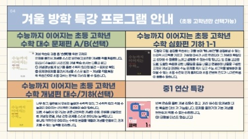 초중등 겨울방학특강 커리큘럼입니다.^^